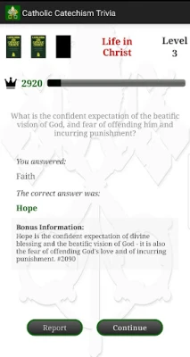 Jifunze na ujaribu ujuzi wako wa Katekisimu ya Kikatoliki ukitumia Catholic Catechism Trivia. Pima ujuzi wako katika Ungamo la Imani, Fumbo la Kikristo, Maisha ndani ya Kristo na Sala ya Kikristo. Pambana kupitia ngazi saba za ugumu unaoongezeka na maswali zaidi ya 1000. Jifunze zaidi huku ukicheza!
