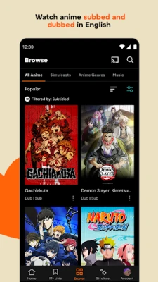Ukiwa na Crunchyroll, una udhibiti kamili wa jinsi unavyotazama. Chagua kati ya matoleo yenye tafsiri za maandishi (subbed) au yale yaliyotafsiriwa kwa sauti (dubbed), na uunde orodha zako binafsi ukitumia 'Crunchylists' kupanga vipindi na vipendwa vyako. Usikose kamwe matukio mapya; pata vipindi vinavyoonyeshwa sambamba na Japan (simulcast) punde tu baada ya kuonyeshwa huko. Chunguza aina mbalimbali za anime kama vile action, adventure, romance, comedy, supernatural, fantasy, na slice of life. Zaidi ya hayo, ingia katika ulimwengu wa muziki wa kipekee na video za wasanii maarufu wa J-pop na matamasha ya kusisimua, ukifurahia hata picha za behind-the-scenes na orodha maalum za nyimbo za anime, zote zikiletwa kwako kupitia Crunchyroll.
