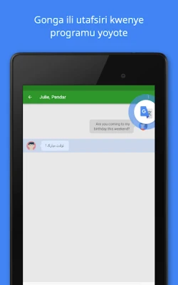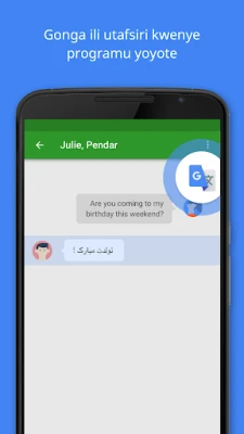 Google Tafsiri hukusaidia kutafsiri maandishi kwa haraka kati ya lugha 108. Tumia "Gusa ili Utafsiri", nje ya mtandao, kamera, picha, na mazungumzo ya moja kwa moja. Pia kuna mwandiko na kitabu cha tafsiri kusawazisha maneno yako muhimu.