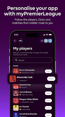 Ukiwa na vipengele kama Matchday Live na Hadithi za Mechi, hutawahi kukosa hata sekunde moja ya msisimko. Pata alama zilizothibitishwa moja kwa moja, takwimu za kina, na masasisho ya jedwali wakati matukio yanapotokea uwanjani, ukifuatilia mabao, safu za wachezaji, kadi nyekundu, na kila hatua muhimu. Kwa Hadithi za Mechi, unaweza kutelezesha kidole kupitia matukio makuu, maoni, na muktadha kutoka kila uwanja, ukipata ufafanuzi wa haraka na burudani inayoendelea. Zaidi ya hayo, myPremierLeague inakuwezesha kuchagua vilabu na wachezaji unaowapenda, kukupa habari, video, na hadithi zilizobinafsishwa kulingana na kile unachojali zaidi. Arifa mahiri zitakufanya kuwa wa kwanza kujua kuhusu safu za wachezaji, mabao, na taarifa muhimu.