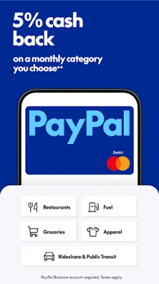 Panua uwezo wako wa kifedha kwa Kadi ya Debit ya PayPal. Omba kadi yako ndani ya programu bila kuhitaji ukaguzi wa mkopo na itumie kufanya manunuzi popote ambapo Mastercard inakubalika. Kumbuka, akaunti ya Salio la PayPal inahitajika ili kupata kadi hii. Pata marejesho ya pesa taslimu ya 5% kwenye kitengo unachochagua kila mwezi, yanayoweza kukombolewa kwa pesa taslimu au chaguo zingine. Kwa wale wanaovutiwa na soko la sarafu za kidijitali, PayPal inatoa fursa ya kununua, kuuza na kuhifadhi Bitcoin, Ethereum, PayPal USD, Bitcoin Cash na Litecoin. Kumbuka kuwa shughuli hizi zina hatari na huenda zisiwe zinapatikana kila mahali kisheria; fikiria kutafuta ushauri wa kifedha. Pia, tumia Akiba ya PayPal yenye riba kubwa kukuza pesa zako, ambapo akaunti ya Salio la PayPal inahitajika. Simamia akaunti yako kwa urahisi, weka malengo na fuatilia maendeleo. Ingawa PayPal ni kampuni ya teknolojia ya kifedha na si benki, huduma ya benki inatolewa na Synchrony Bank, Mwanachama FDIC.